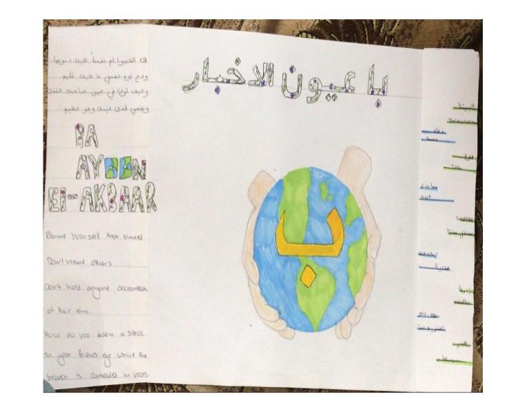 Anfal, one heritage student in the class, shared that the project boosted her confidence in her Arabic language skills and in her identity as a British Arab. She understands how important it is to “talk about our tradition and show people who we are.” As she learns Arabic, she feels greater confidence and pride in the language.