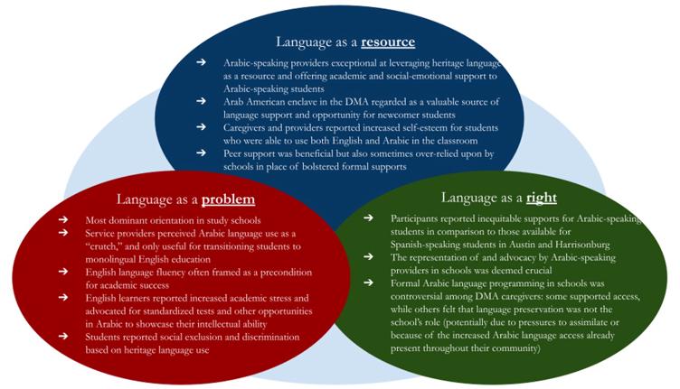 Ultimately, our findings reveal the inequities that newcomer students face in U.S. public schools due to language biases, and the vital role of Arabic-speaking service providers in supporting and advocating for students. Our article also highlights the implications of school-based language orientations on newcomer students’ academic success and overall wellbeing; while heritage language use has been historically deemed a ‘problem’ in schools, district leaders and educators have a responsibility to reorient language programming and policy efforts to align with heritage language as a resource and as a right to ensure that Arabic-speaking immigrant students have the support they need to thrive in their new communities.